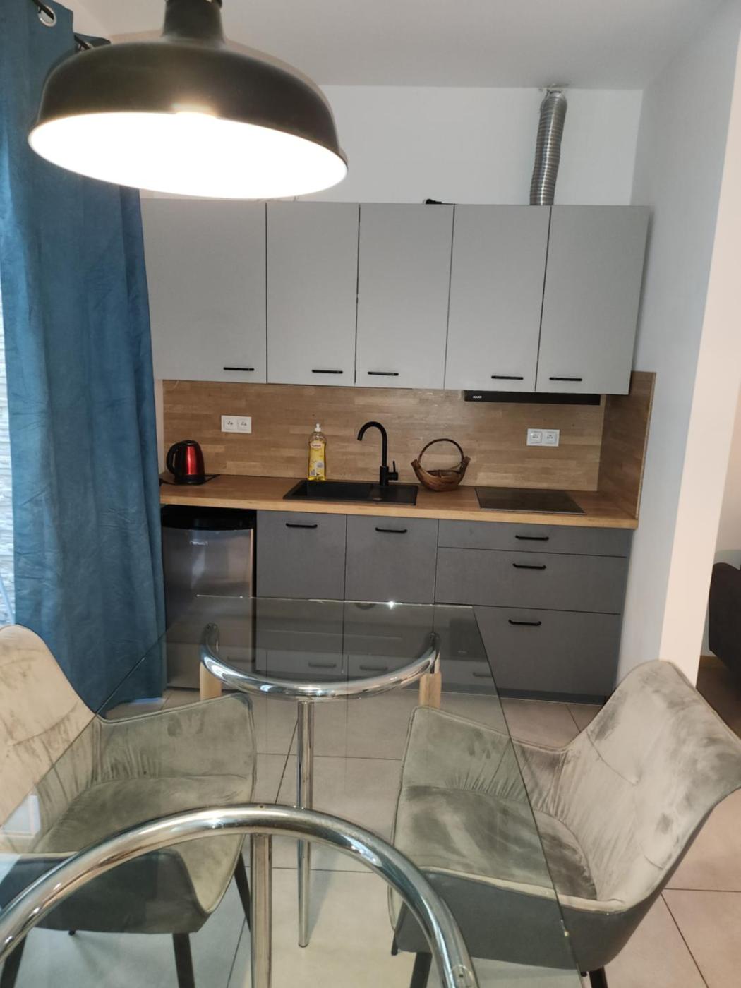 Studio z balkonem. Meals can be prepared in the well-fitted kitchenette, which comes with a stovetop, a refrigerator, kitchenware and an electric kettle. The studio provides a private entrance, a dining area, a balcony with city views as well as a private bathroom featuring a walk-in shower. The unit offers 2 beds. Studio - 2 osobowy. Powierzchnia pokoju ok.: 20 mkw. ;
